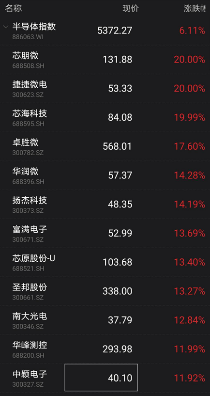 板块个股快速冲高,捷捷微电、芯朋微、紫光国微、斯达半导、立昂微等股先后涨停,芯片股的卓胜微、芯原股份-U、思瑞浦等个股都涨幅居前。