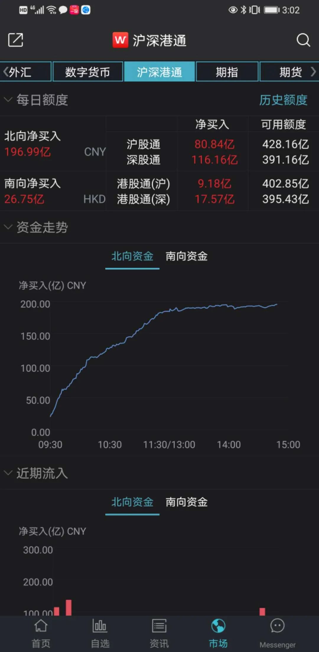 两市成交额时隔2个月再度突破万亿元。wind数据显示,截至记者发稿,北向净买入超196亿元。