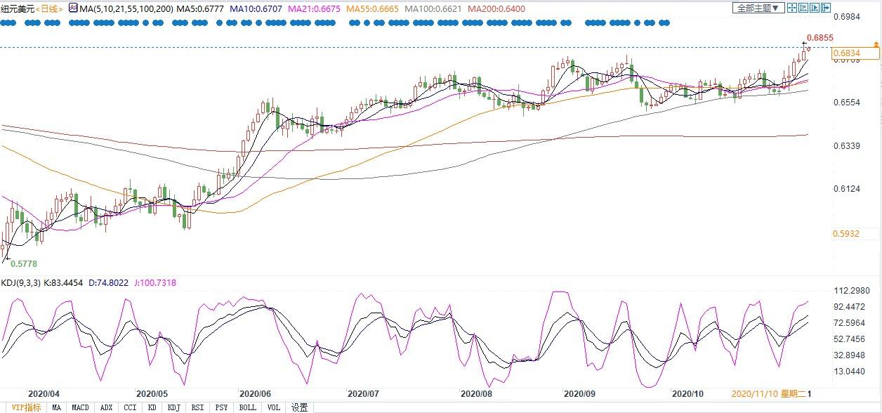 在连涨六个交易日后上涨动能有所减弱,目前仍维持在逾一年半高位附近,如果周三新西兰联储为推出新的刺激措施做铺垫,为未来实行负利率铺路,纽元将面临一定的回调风险,甚至是见顶风险。