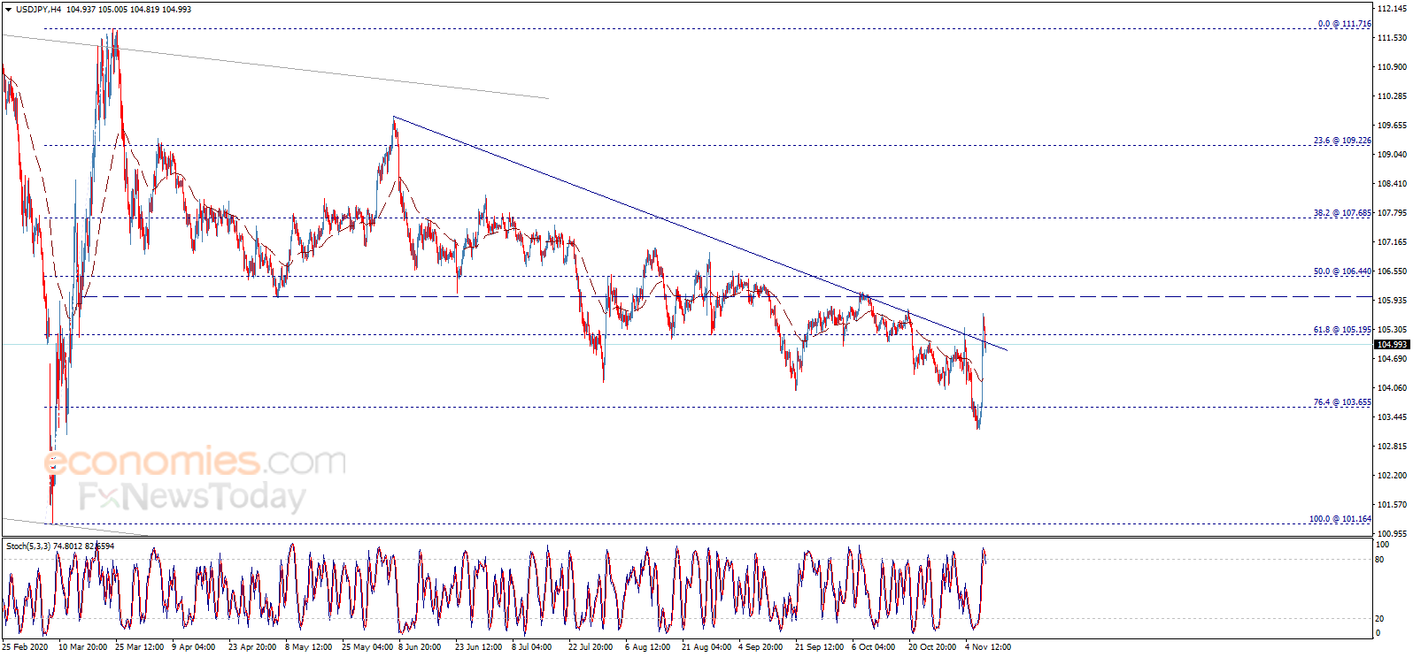 美元/日元昨日在突破103.65后急剧上涨,并一度触及105.65区域。值得主要的是,美元/日元开始今日交易后呈现明显的看空倾向,并交投在105.20下方,这暗示该汇价将恢复主要看空趋势。从4小时图来看,随机指标传递正面信号,这支持看涨预期。