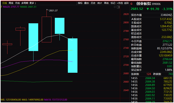 A股创业板指数创近两个月最大跌幅