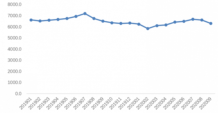 2019年1月-2020年9月北京租赁住房成交套均租金走势 来源:贝壳研究院
