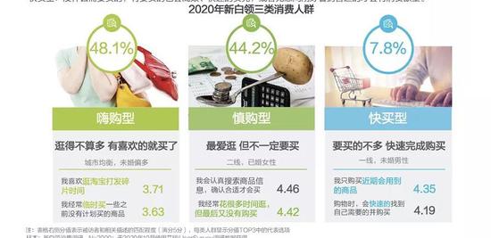 近一半“新”白领喜欢冲动消费,三种消费类型中,嗨购型消费占48.1%。
