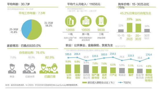 年近三十、月入过万、有房有车、……该报告用一系列的概括对2020年新白领进行了人群画像。