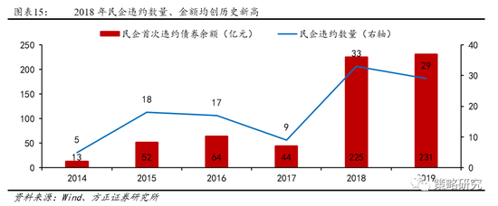2018年下半年起民营企业信用违约开始集中爆发,9月下旬开始进入高潮。2018年民企违约主体数量为33个,违约金额为225亿元,均创下历史新高。本轮信用危机出现的根本原因是在2016-2017年的信用扩张时期企业杠杆率的大幅提升。2018年以来信用收缩叠加金融去杠杆导致民企融资困难,2年左右后债务集中到期,外部环境的恶化导致企业资金周转困难,民企出现集中违约的现象。具体来看,本轮信用危机其实从2018年4月起就初现端倪,神雾环保、富贵鸟等公司债券就接连违约。2018年7月起,民营企业信用违约开始集中爆发,永泰能源、上海华信、乐视网等公司发行的债券接连违约。9月下旬开始民企违约进入高潮,从9月到11月新增违约民企数量为17个,超过全年新增违约民企数量的50%,违约金额也超过了全年的40%。进入12月后随着信用的由紧转松,民企违约现象得到暂时性缓解。