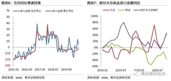工业品方面,受益于19年的低基数,汽车单月进口额同比增速大幅提升至101.82%,集成电路的同比增速有所回落。