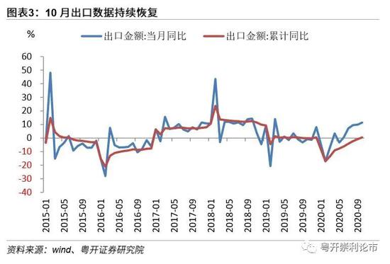外贸数据方面,10月中国出口(美元计价)同比11.4%,出口数据持续恢复,全球经济复苏带动的需求回暖是带动出口强劲的重要原因。