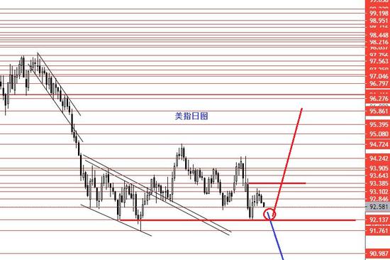 美指上周五跌破92.85短线支撑,周图收小阳柱。从图形来看,美指周线收盘偏低,本周再次测 试92.10的概率较大些,若成功跌破92.10继续下行的概率将加大;若92.10上方能企稳反转向上,继续关注93.40阻力,若站上继续看涨至95.80,目前后者概率65%。本周建议右侧做多美指,可等待92.10上方四小时图再次给出向上信号后再进场做多,今日不做空先观望。