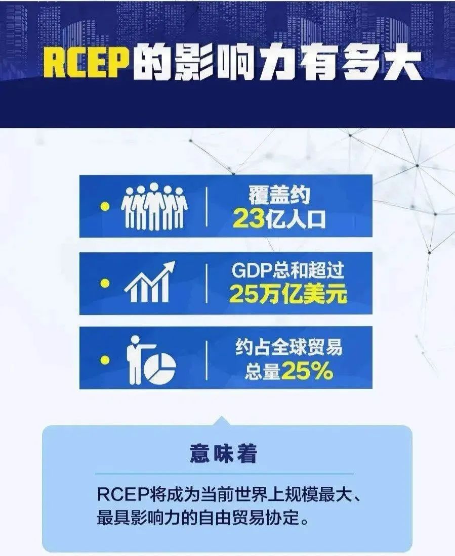 在当前世界经济面临困难的背景下,全球约1/3的经济体量将形成一体化大市场,这个消息对世界经济和市场信心当然具有极大的提振效应。