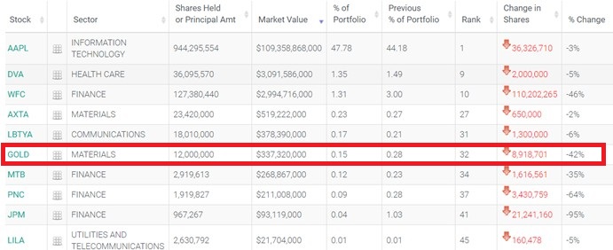 最新公布的持仓数据显示,截至9月30日,伯克希尔对金矿巨头巴里克黄金的持仓减少了逾40%。