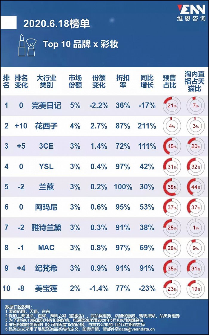 从最近的数据来看,根据天猫官方数据,今年“双11”,完美日记再登彩妆品牌榜首。而继完美日记后第二个惹起关注的新锐国货品牌花西子,同样是借助社交裂变,提升品牌口碑、取得流量,完成了销量的增长。