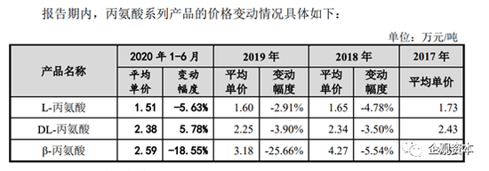 需要注意的是,2017年至2020年上半年,华恒生物丙氨酸系列产品的平均单价连年下滑,这也意味着,丙氨酸系列产品的市场规模也在逐渐缩小,留给华恒生物的利润空间已然遭遇挑战。