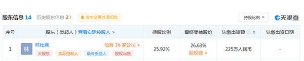 天眼查显示,北京修齐治平科技有限公司成立于2014年8月19日,注册资本为868.18万元。创始人林仕鼎直接持股25.92%,最终受益股份为26.63%。