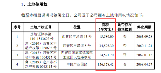 在土地使用权中,依依股份共有四个。其中,有三个在天津西青区丰泽道,共计6.4万平方米;一个在中捷产业园区,共计15.61万平米。