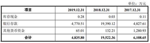 2016年至2019年各期末,中瓷电子的货币资金余额分别为5271.70万元、6108.65万元、19,522.36万元及4835.80万元,占流动资产比例分别为31.90%、23.26%、43.12%及11.49%。