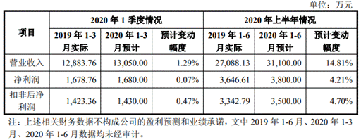 中瓷电子预计2020年上半年实现营业收入31,100.00万元,同比增长14.81%;实现净利润3800.00万元,同比增长4.21%;实现扣非后净利润为3500.00万元,同比增长4.70%。