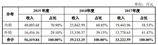 招股书显示,2017年至2019年,中瓷电子的外销收入分别为13,778.63万元、15,350.37万元和16,416.16万元,占主营业务收入比例分别为 41.47%、39.15%和29.10%,逐年下降。