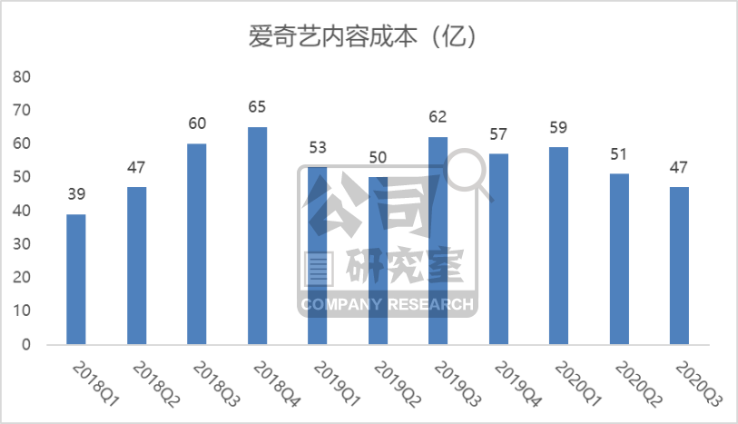 优质供应商稀缺,用户随着内容走,长期以来,内容成本一直是爱奇艺支出方面的大头。2018年和2019年,爱奇艺内容成本分别为211亿和222亿,占收入的84%和77%。2020年前三季度,内容成本总计157亿,占收入71%。但降的还不够多,因为爱奇艺从未盈利过。