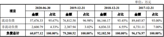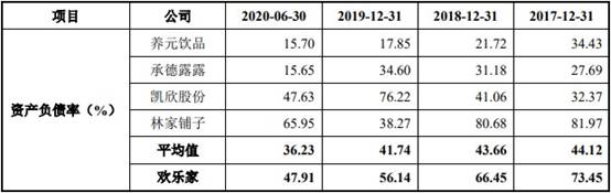 截至2017年末、2018年末、2019年末、2020年6月末,欢乐家的负债总额分别为9.62亿元、9.22亿元、7.92亿元、6.01亿元。