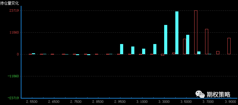 从12月持仓分布来看,认购最大持仓由3500变为3600,认沽仍在3400处持仓最大,50ETF支撑不变,压力已上移。