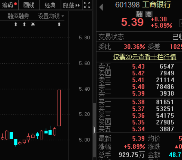 上证指数还在3400点附近寻求突破,上证50率先爆发了。昨天尾盘,“宇宙大行”工商银行股价直线拉升,收涨5.89%,成交额创近五年新高。