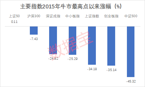 上证50指数是A股主要大盘指数中,唯一超越上轮牛市顶点的指数,沪深300指数表现次之,距离上轮牛市顶点还有7.43%。同期大盘大指数中,上证指数和创业板指数跌幅均超过30%。