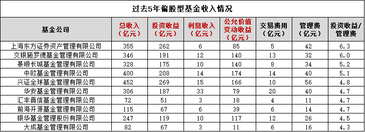 从基民的角度来说,过去5年,每付出一块钱管理费,可以获得6.9倍的总收入,近两年的公募基金,尤其是偏股型基金的投资收益率上升更为明显,总收入与管理费的比例超过20倍。