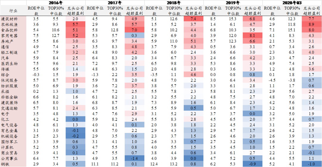 二是行业间的分化,不同行业内部的盈利分化程度也存在较大差异,过去五年来看,建材、农林牧渔、食品饮料、家电和房地产等行业竞争格局不断优化,龙头公司的超额盈利明显,而钢铁、公用事业、商业贸易、计算机等行业的竞争格局并没有明显变化。