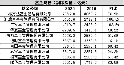 今年以来剔除货币基金的头部基金公司规模增幅惊人