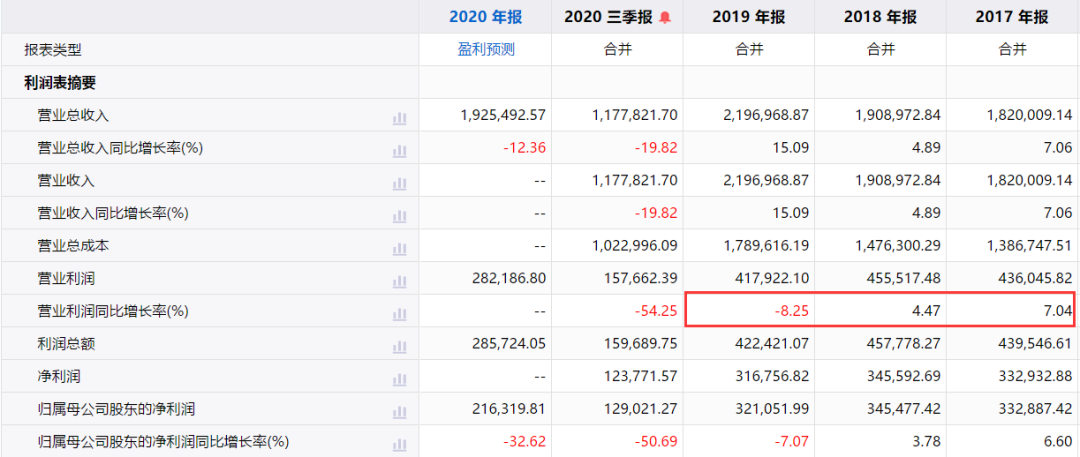 但是,这两年的日子也并不好过。营业利润增长率持续下降,在2019年更是负增长。