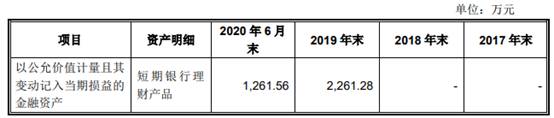 2019年末和2020年6月末,正弦电气购买短期银行理财产品分别为2261.28万元、1261.56万元。