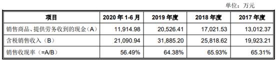 受此影响,2017年至2020年上半年,正弦电气的销售收现率分别为65.31%、65.93%、64.38%和56.49%,销售回款的情况不佳。