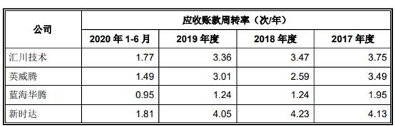 2017年2020年上半年,正弦电气应收账款周转率分别为3.73、4.91、5.20和2.25,同行业可比上市公司的应收账款周转率均值分别为3.33、2.98、3.18和1.60。