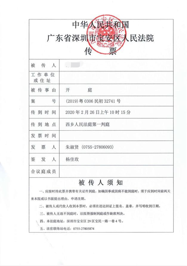 2020年2月26日、2020年3月12日,案件在宝安区人民法院西乡法庭开庭审理,被告本港中视公司无正当理由拒不到庭,案件择期宣判。