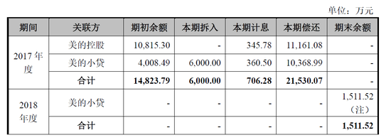 报告期内,公司与美的集团存在关联资金拆借的情况,系公司向美的集团下属公司美的小贷拆入资金。报告期内,公司向美的小贷借入资金金额分别为6,000万元,0元和0元,公司向美的小贷拆借的资金已于2019年末全部偿还。美的小贷为美的集团旗下的小额贷款服务公司,美的集团通过美的小贷向符合条件的供应商提供借款业务。公司作为美的集团合格供应商,为满足自身融资需求,在利率合适的情况下向美的小贷借款,相关交易具有合理性。