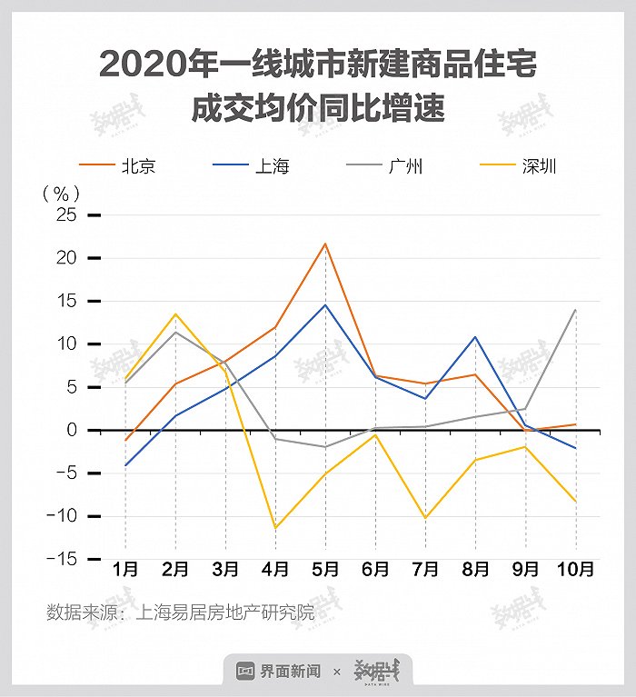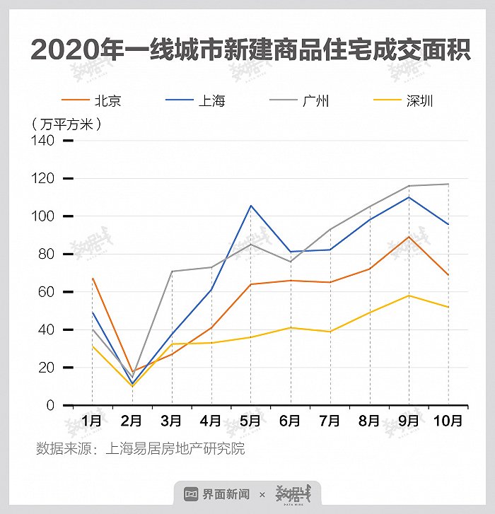 据易居研究院,2020年前10月,深圳新建商品住宅月度成交均价约5.6万元/平方米。
