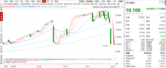 2017年12月河北建设赴港上市,当时市值不足50亿港元,今年以来随着公司纳入MSCI小型股指数,公司股价被爆炒,截至上周五市值一度高达502亿港元,上市三年市值涨了10倍。而今,公司股价直接暴跌60%,“白马”为何失蹄?