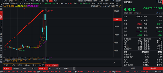 热点栏目12月1日消息,“雄安第一股”,中国第二大民营建筑盘中遭洗仓,400亿市值的河北建设今日暴跌60%,报价8.91港元,230亿市值蒸发,目前市值157亿港元。