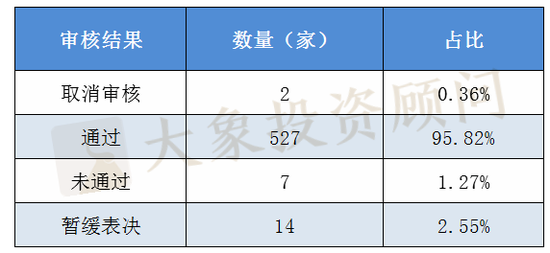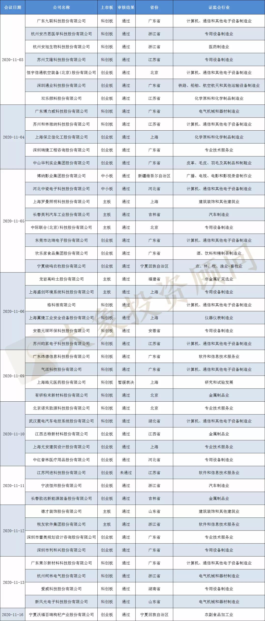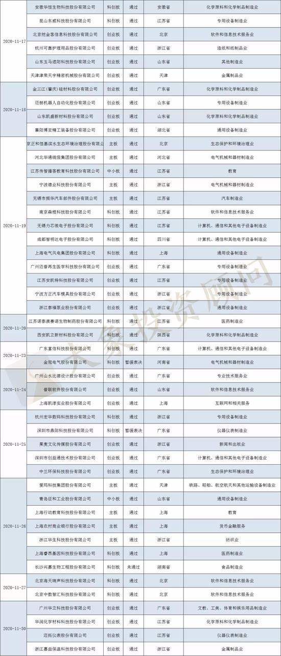 2020年11月新上会企业审核结果情况: