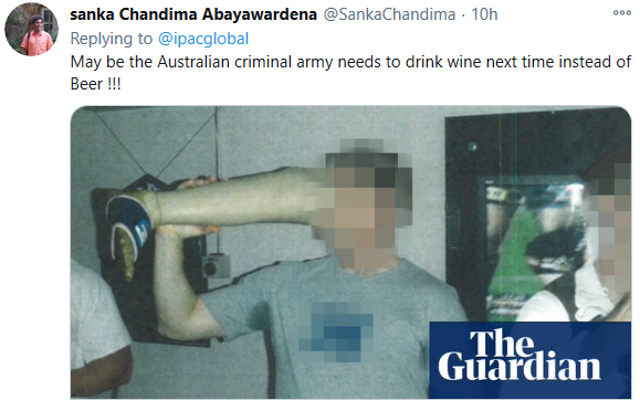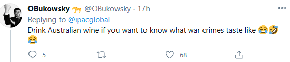 一位澳大利亚网友一眼看穿欧美议员是在为澳政府转移视线:“这是我们自己政府造成的问题,也是我们逃避战争罪行的好办法。我们不需要你们喝酒来团结,我们需要你们让澳政府为战争罪、气候变化、侵犯人权的行为负责……”