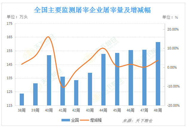 国内需求面:随着天气逐渐转凉,南方部分地区腌腊已有开展,需求逐渐好转,据Cofeed调查数据显示:截止11月25日当周,据本网调查的全国主要监测屠宰企业的屠宰量为1613883头,较上周(第47周)的1558251头增加了55632头,增幅为3.57%。另外中南区将于11月30日全面禁止非中南区生猪调入,稳步推进“调猪”向“运肉”转变,且双节逐步临近,后期消费动力将增强,猪肉需求或进一步增加。