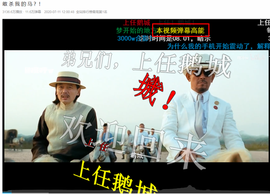 昨天,B站公布了2020年度弹幕,“爷青回”(爷的青春回来了)以出现5420359次的荣登榜首,B站的宣传文案写道: