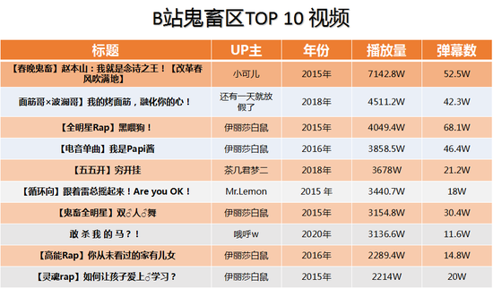 2015年~2016年是鬼畜区的巅峰,B站播放量top10的鬼畜视频里,70%都是在当年诞生的,光是up主“伊丽莎白鼠”的作品就占了一半。