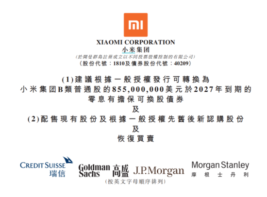 其一,小米集团于12月1日盘后签订可转债认购协议,将发行8.55亿美元七年期零票息可转换债券,发行价为债券本金额的105.25%,扣除佣金及开支后,小米集团本次发债预估所得款净额为8.896亿美元;