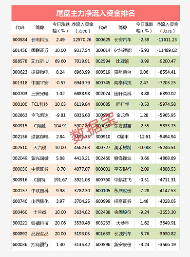 【主力资金】芯片封测龙头尾盘资金大幅流入