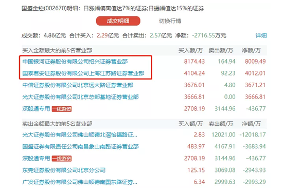 11月26日-12月2日期间,国盛金控连续五个交易日登上龙虎榜。12月1日,两家知名游资分别以买一和买二位置买入国盛金控,合计买入金额超1.2亿元。