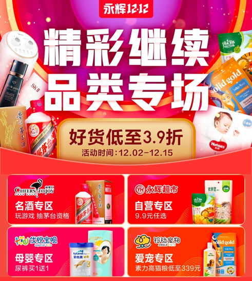 继“省心省力,先到鲜得”的火热双11后,永辉超市狂欢不停,再度惠动全国。今年双12,永辉超市活动精彩纷呈,12.12元专区、特价爆品、品类专场等钜惠促销联袂来袭,同时免费抽奖集字得茅台购买资格、下单返券、天天领红包等互动游戏劲爆上线,让利用户尽享优惠,力将省钱进行到底。