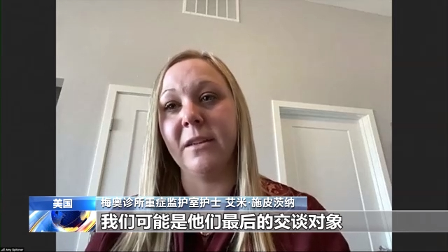 梅奥诊所重症监护室护士 艾米·施皮茨纳:这些病患是我见过病得最严重的人,他们可能今天还好,但第二天就要用呼吸机了。当我们给他们插管时,我们知道,作为照顾这些病人的人,我们可能是他们最后的交谈对象。