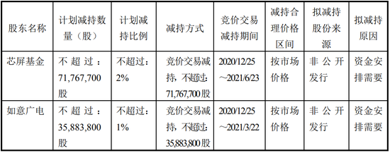 如意广电拟以集中竞价方式减持不超过3588.38万股彩虹股份,即减持不超过彩虹股份总股本的1%。