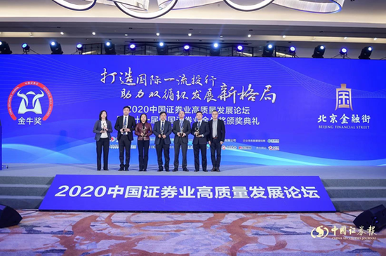 12月2日,由中国证券报举办的2020 中国证券业高质量发展论坛在北京举行。本次论坛公布了“2020中国证券业金牛奖”评选结果。光大证券荣获“证券公司社会责任奖”和“金牛投资银行团队”殊荣。公司总裁刘秋明出席活动并作为获奖证券公司代表致辞。